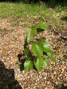 Meanwhile, there is a vast expanse of gravel driveway and parking area out the front of my house with a towering Beech tree, beneath which previous householders resorted to annual relaying of turf. I left the whole thing out of the zoning plan as I dithered over what to do with it. I’m delighted to say that it has made its own decision to become a somewhat mixed woodland. I’ve spotted cherry, yew, holly, ash and possibly a few birch seedlings (see pic), as well as plenty of buddleia. So far the only management has been picking up excess dry leaves in the warmer week we had last month (when insects had hopefully emerged) and endlessly pulling up millions of sycamore seedlings. More intervention may possibly be needed once we can no longer get down the drive, which leads to my next item……